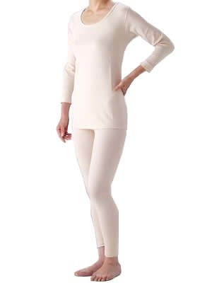 ドクタースガ ほかほかインナー 丸首8分袖+足首丈ボトムセット アイボリー LL